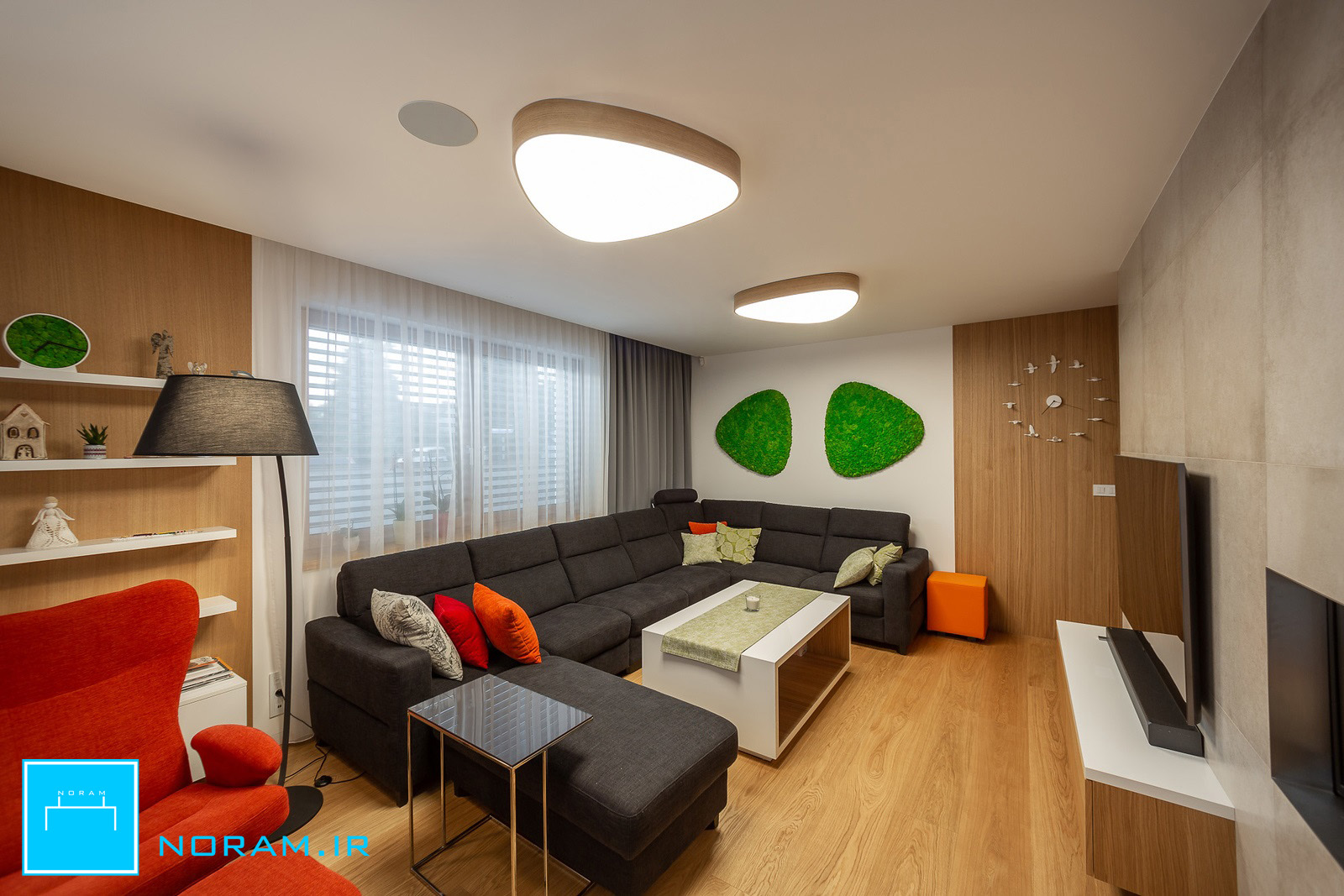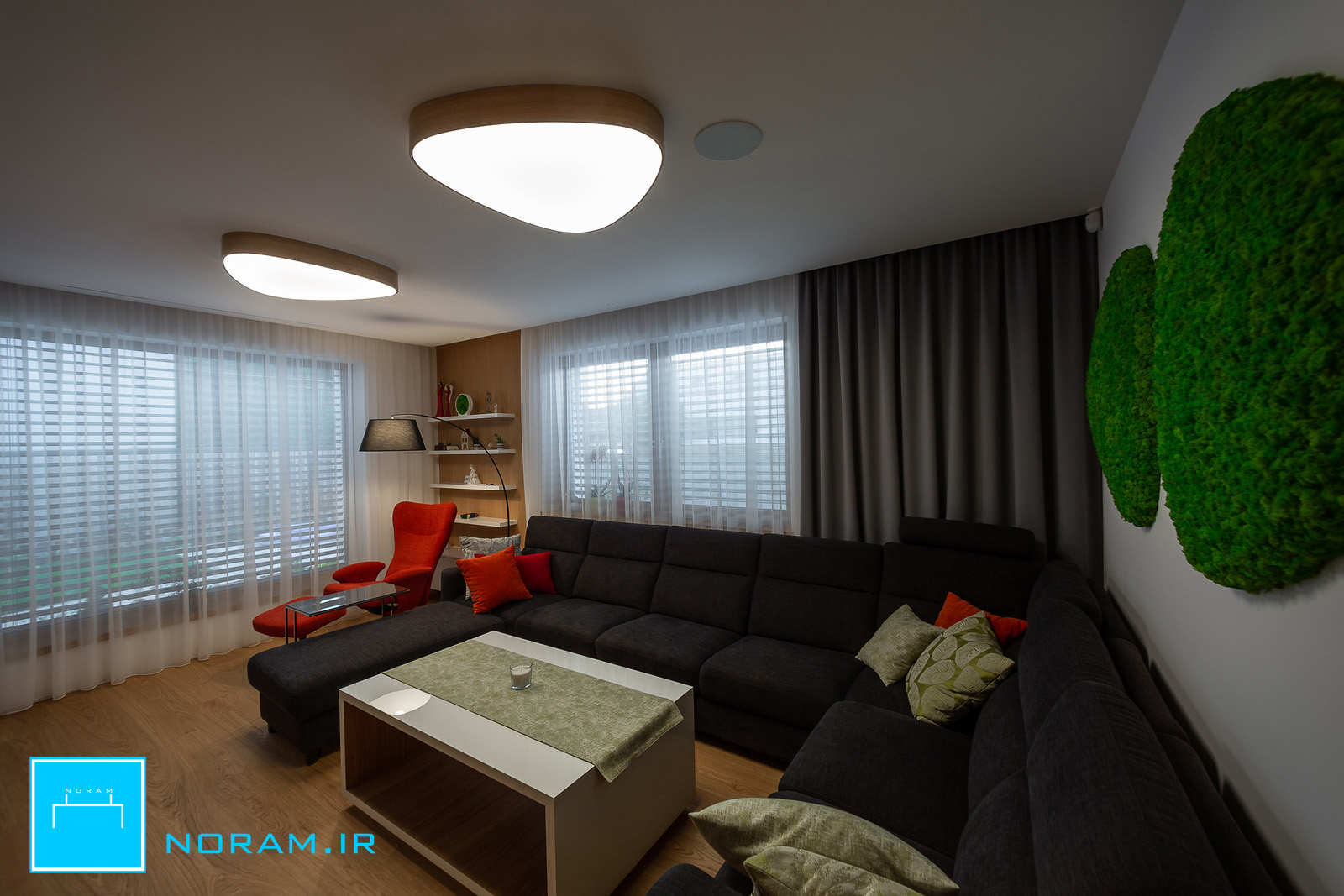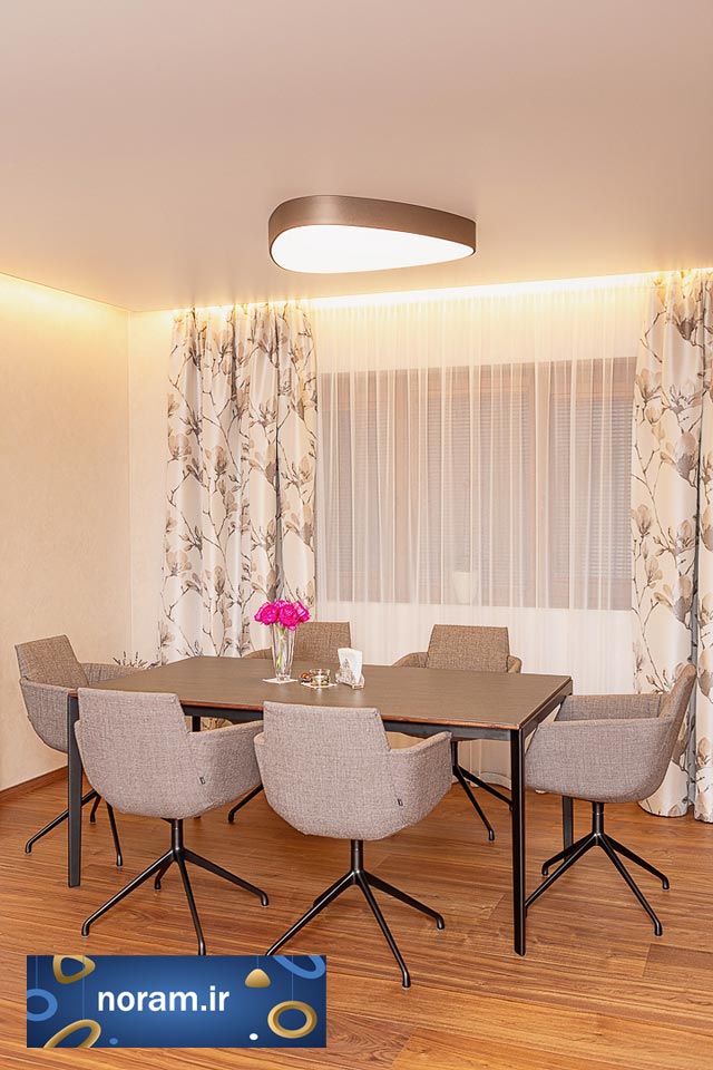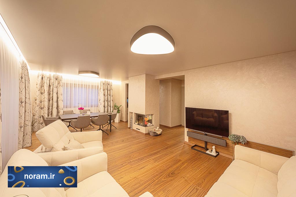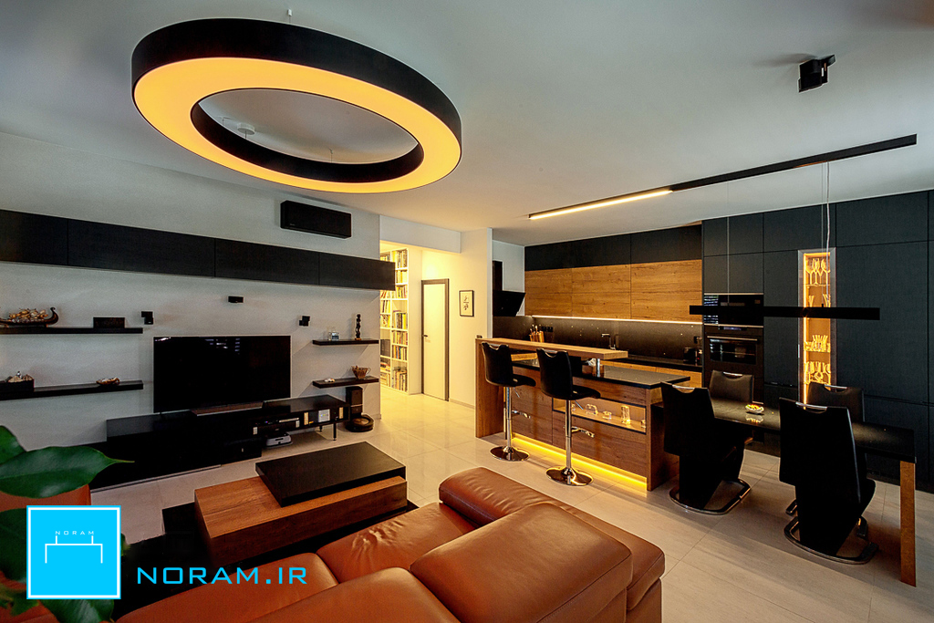 این فضاسازی را با لوستر مینیمال نورام میتوانید با گوشی هوشمندتون انجام بدهید. با اپلیکیشن چراغ نورام و یا با ریموت کنترل آن میتوانید این کارها را انجام دهید