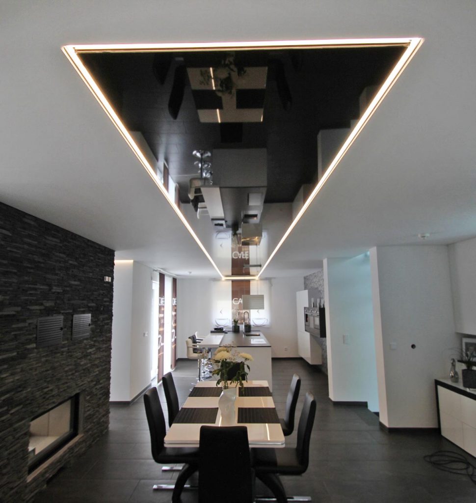 سقف های کشسان لاکر به راحتی بر روی سازه های کناف پیچ میشوند. با استفاده از خود سازه های کنافی، میتوانید پروفیل های سقف های کشسان را به سقف کناف متصل کنید. سقف های لاکر مخصوصا رنگ مشکی، هارمونی بسیار زیبایی را برای دکوراسیون شما پدید می آورد.