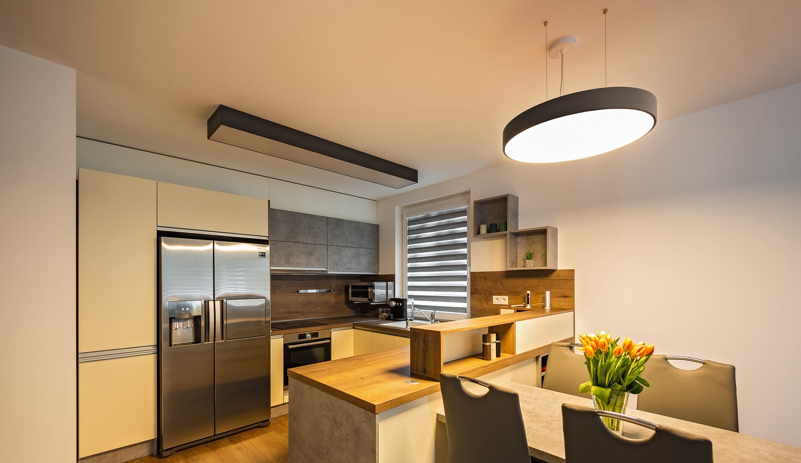 این فضاسازی را با لوستر مینیمال نورام میتوانید با گوشی هوشمندتون انجام بدهید. با اپلیکیشن چراغ نورام و یا با ریموت کنترل آن میتوانید این کارها را انجام دهید