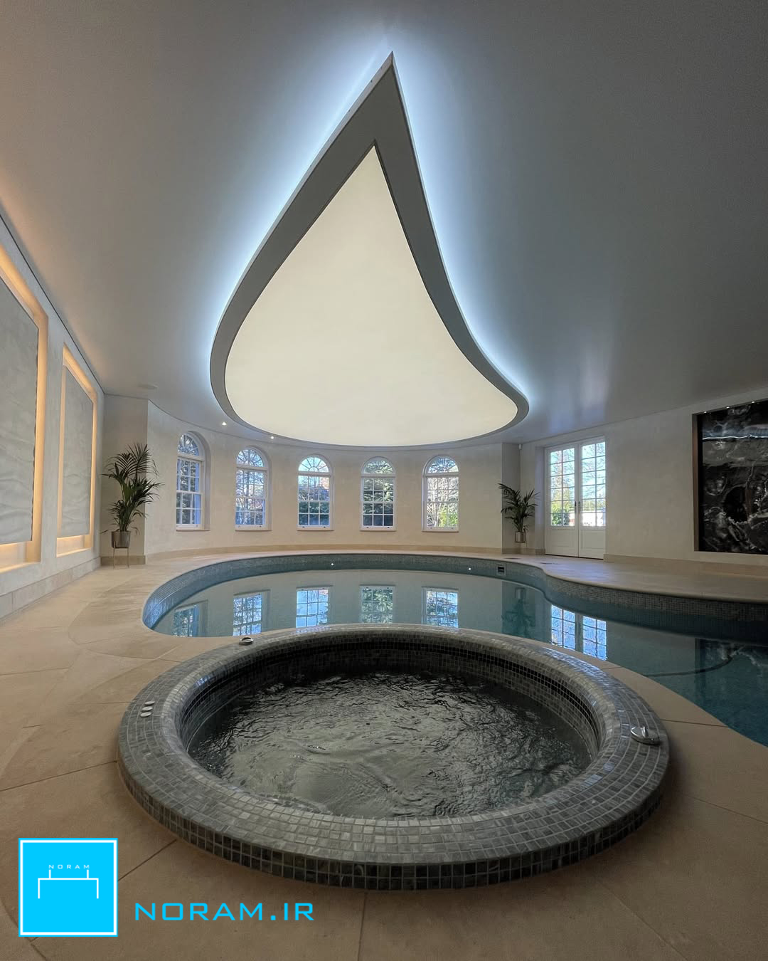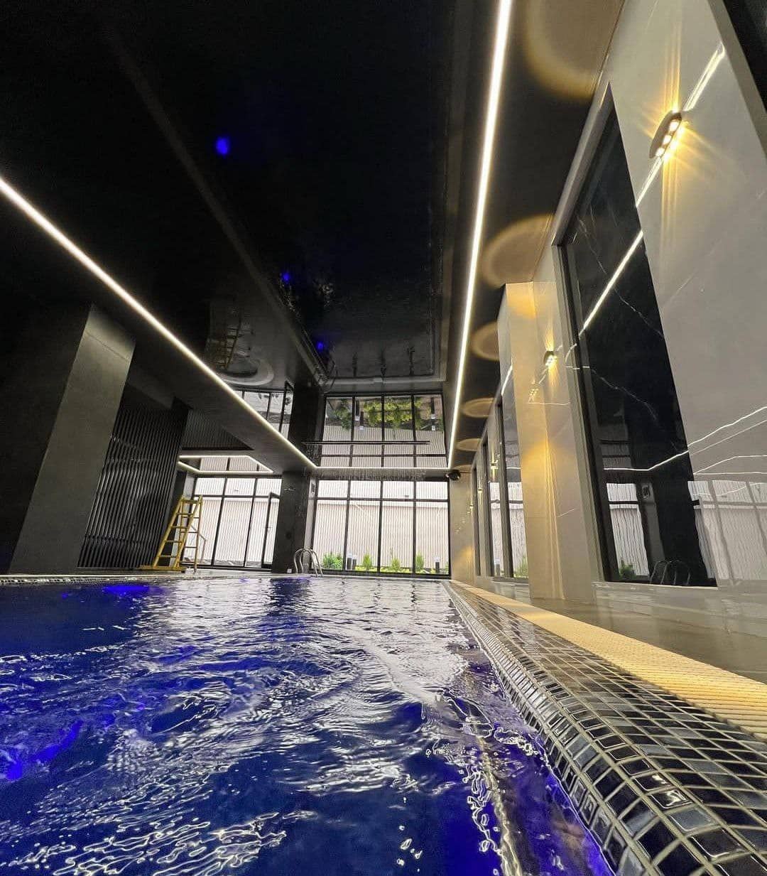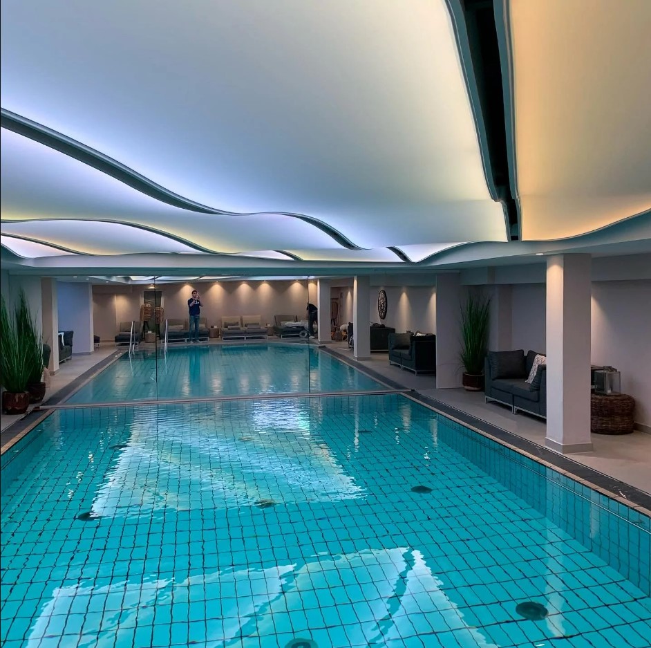 سقف کشسان مدرن ترین سقف مناسب محیط استخر است. این سقف انعطاف پذیری بالایی دارد و به شکل های متنوع و مینیمالی میتوانید از آن در استخر مدرن خود بهره ببرید. سقف کشسان کاملا ضد آب است و در بلند مدت هم پوسیده نمیشود. برای آشنایی با سایر سقف های قابل بهره برداری در استخر به لینک زیر مراجعه کنید. لینک