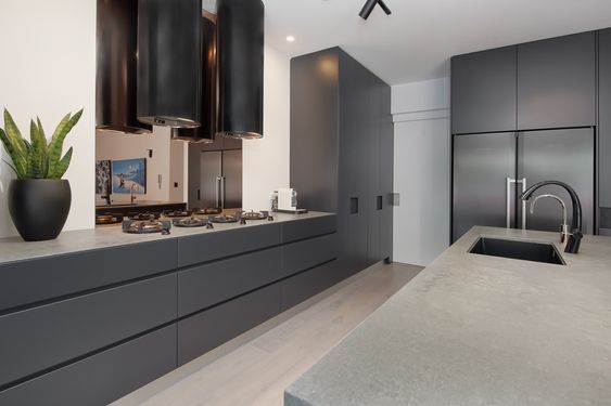 آشپزخانههای مدرن به کاربری بهینه فضاها و افزایش کارایی توجه دارند. طراحی مدرن با خطوط ساده و زیبا و استفاده از مواد مدرن و مقاوم مانند استیل، شیشه و سرامیک برای ایجاد طراحیهای نوآورانه مورد استفاده قرار میگیرند. استفاده از دستگاهها و تجهیزات هوشمند جزء ویژگیهای مدرن آشپزخانه است.