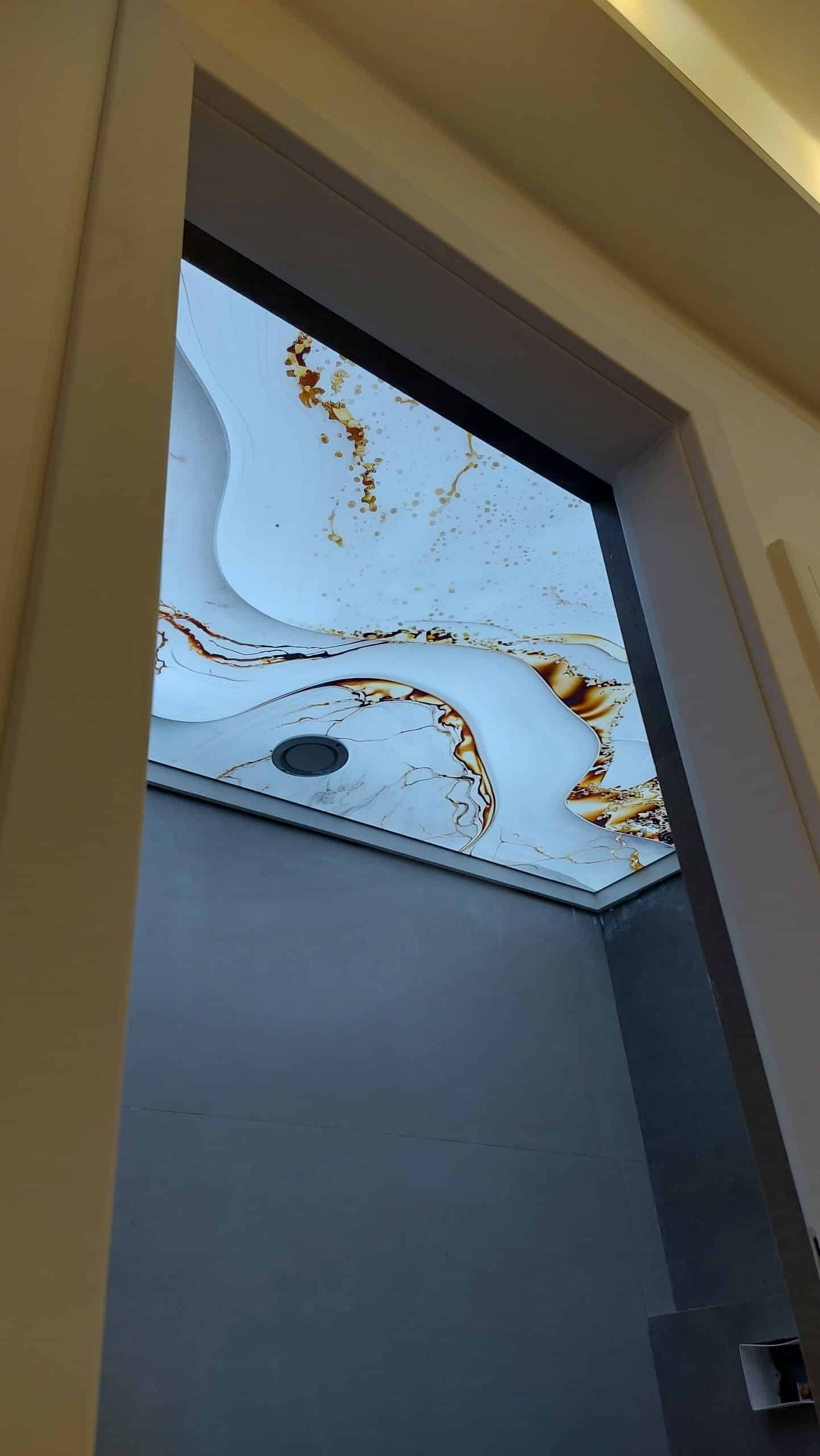 طرح های شما بوسیله جدید ترین و با کیفیت ترین دستگاه ها، چاپ میشوند. سقف های چاپی  را میتوانید به منظور افزودن هویت بصری به محیط داخلی خود استفاده کنید. در قسمت زیر سازی این سقف ها نورپردازی میشود تا زنده و پویا شوند.