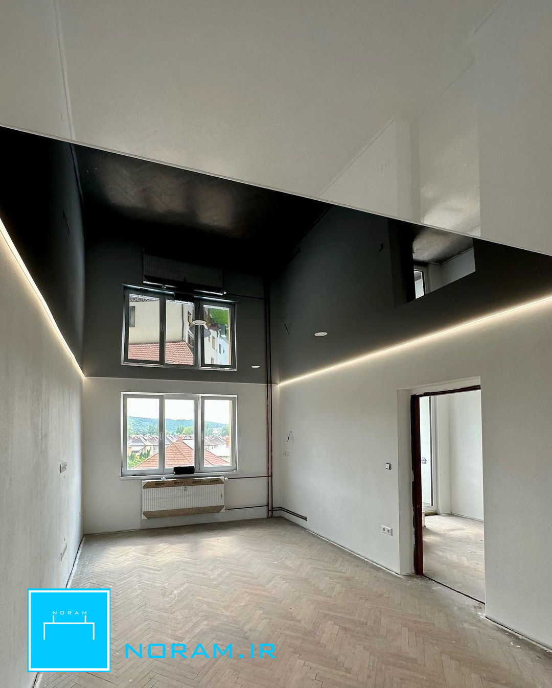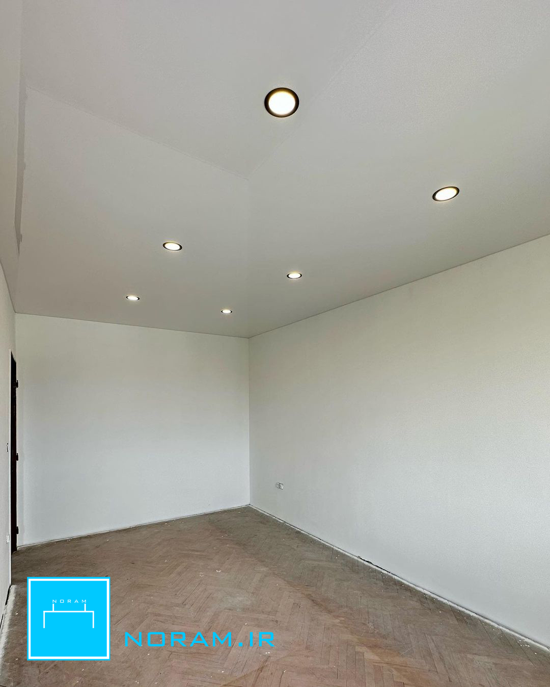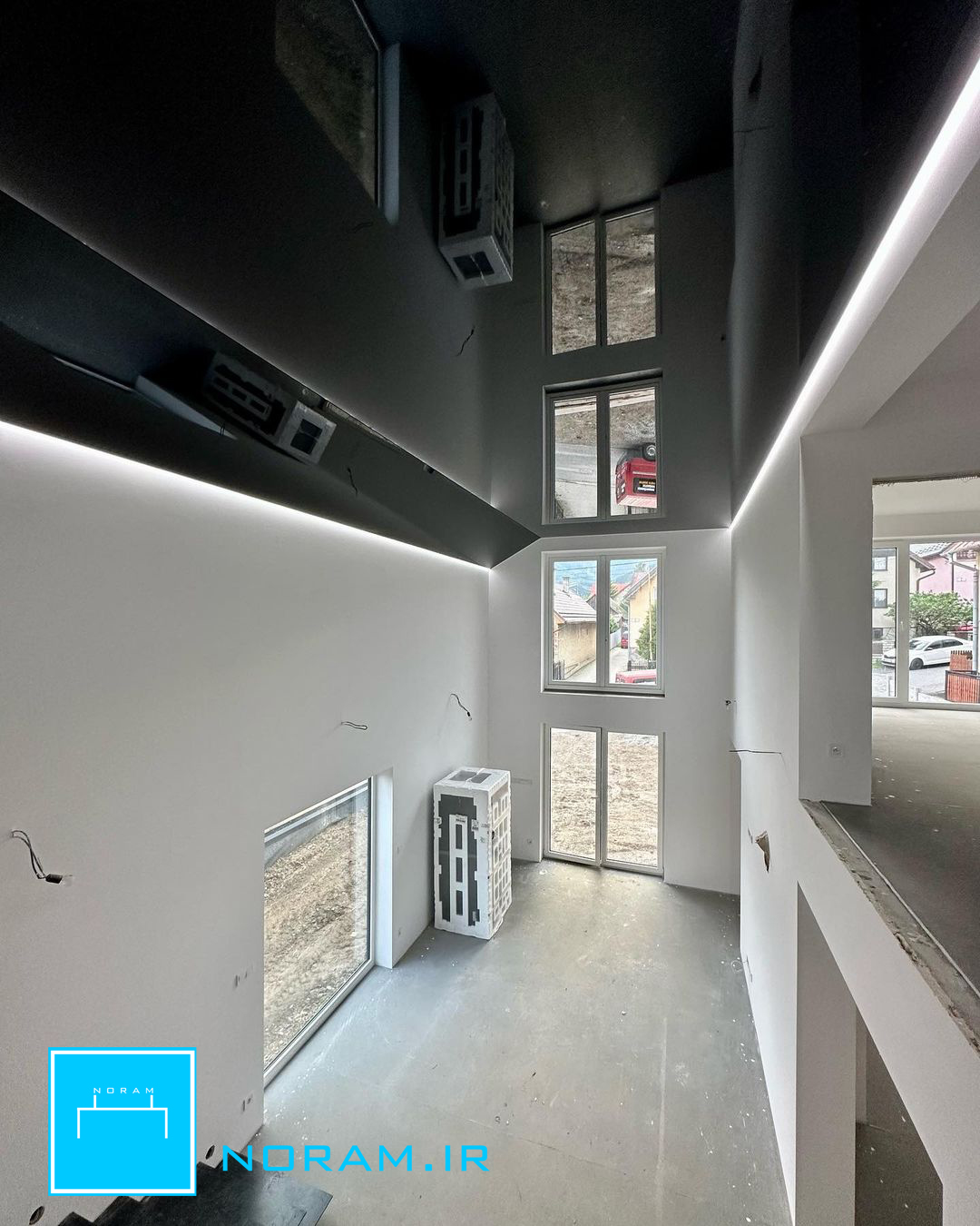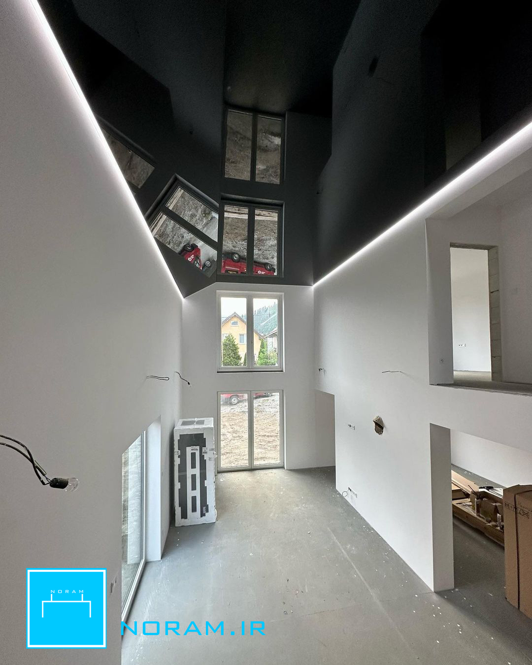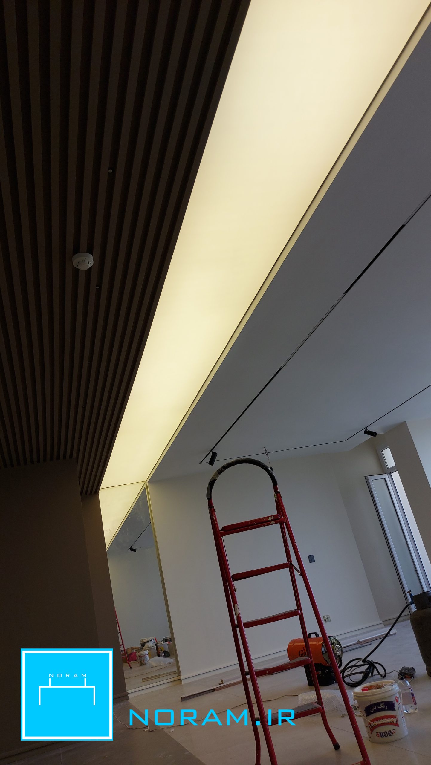 اجرای سقف کشسان به همراه نورپردازی همسطح لاین نوری در پروژه مسکونی، متل قو تهران