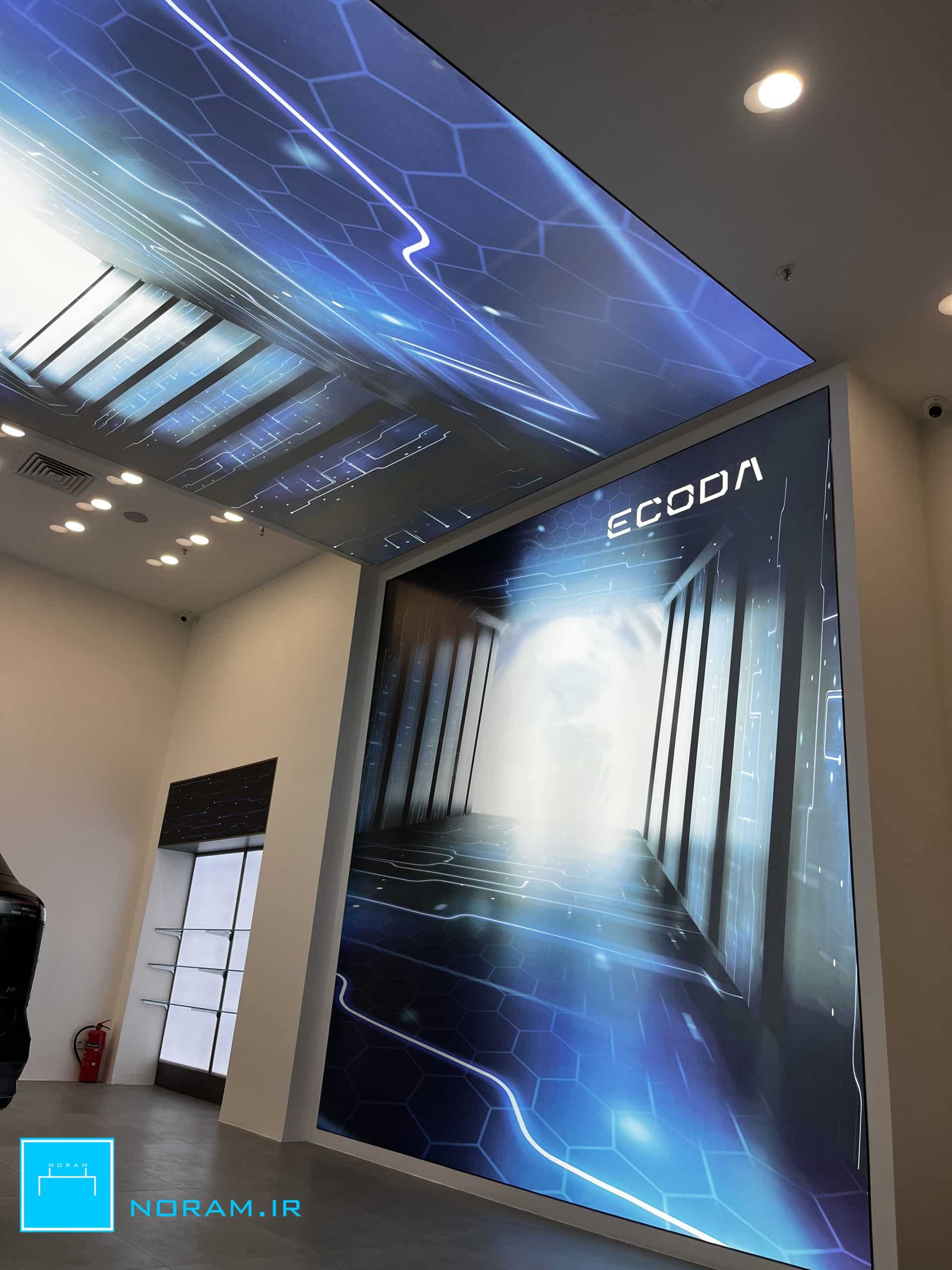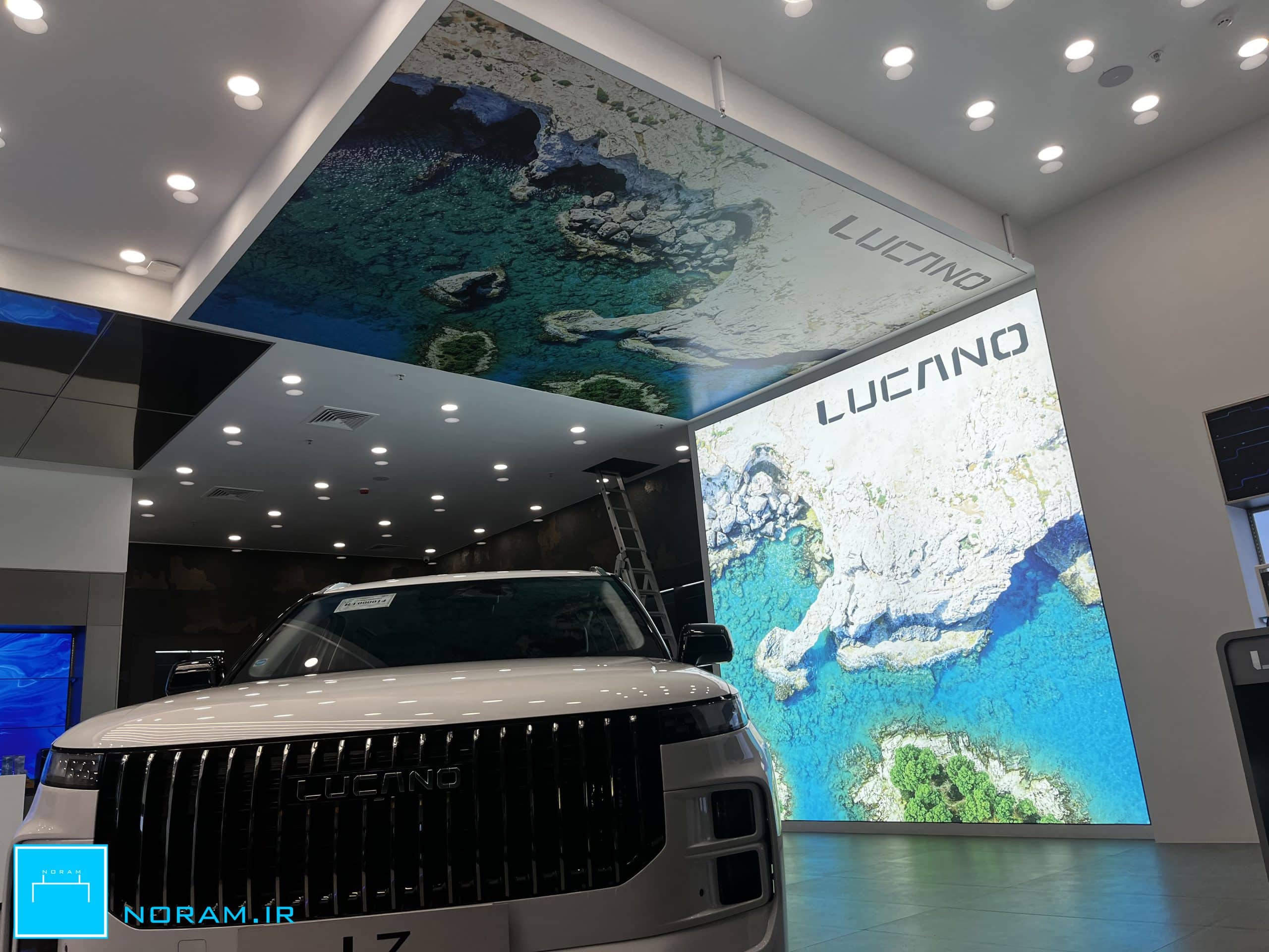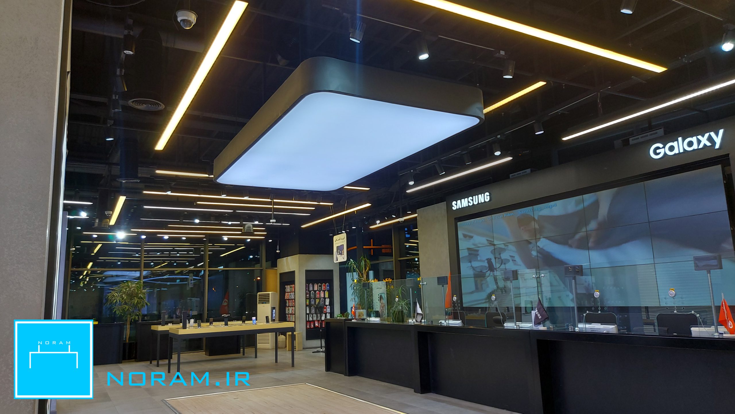 اجرای نورپردازی و سقف کشسان پروژه نمایندگی لوکانو در ایران مال، تهران