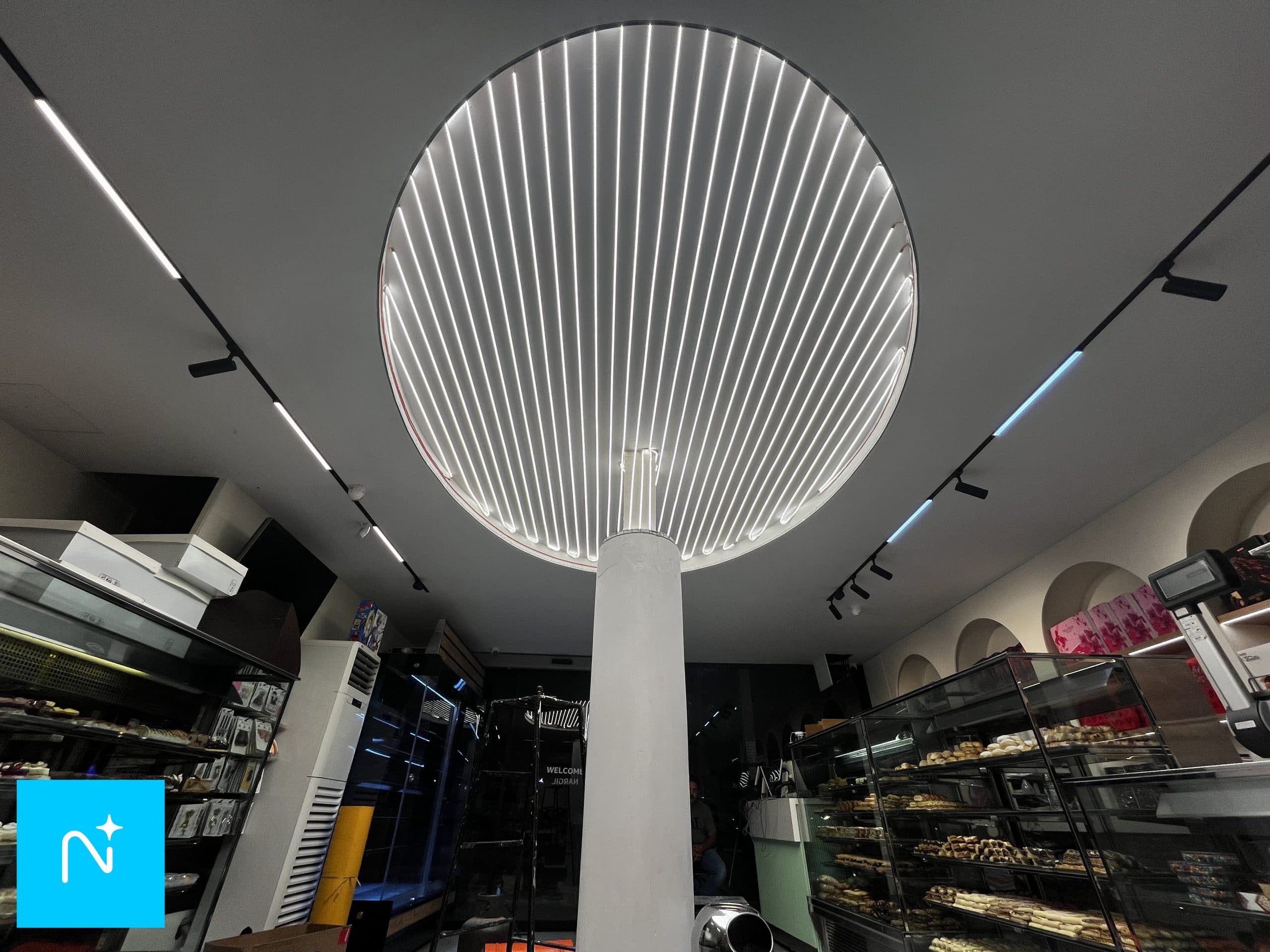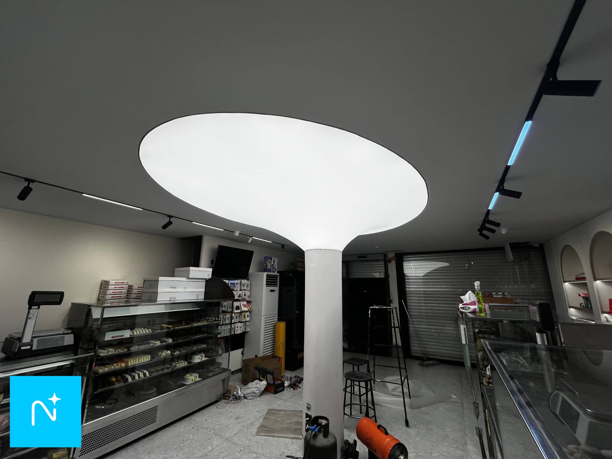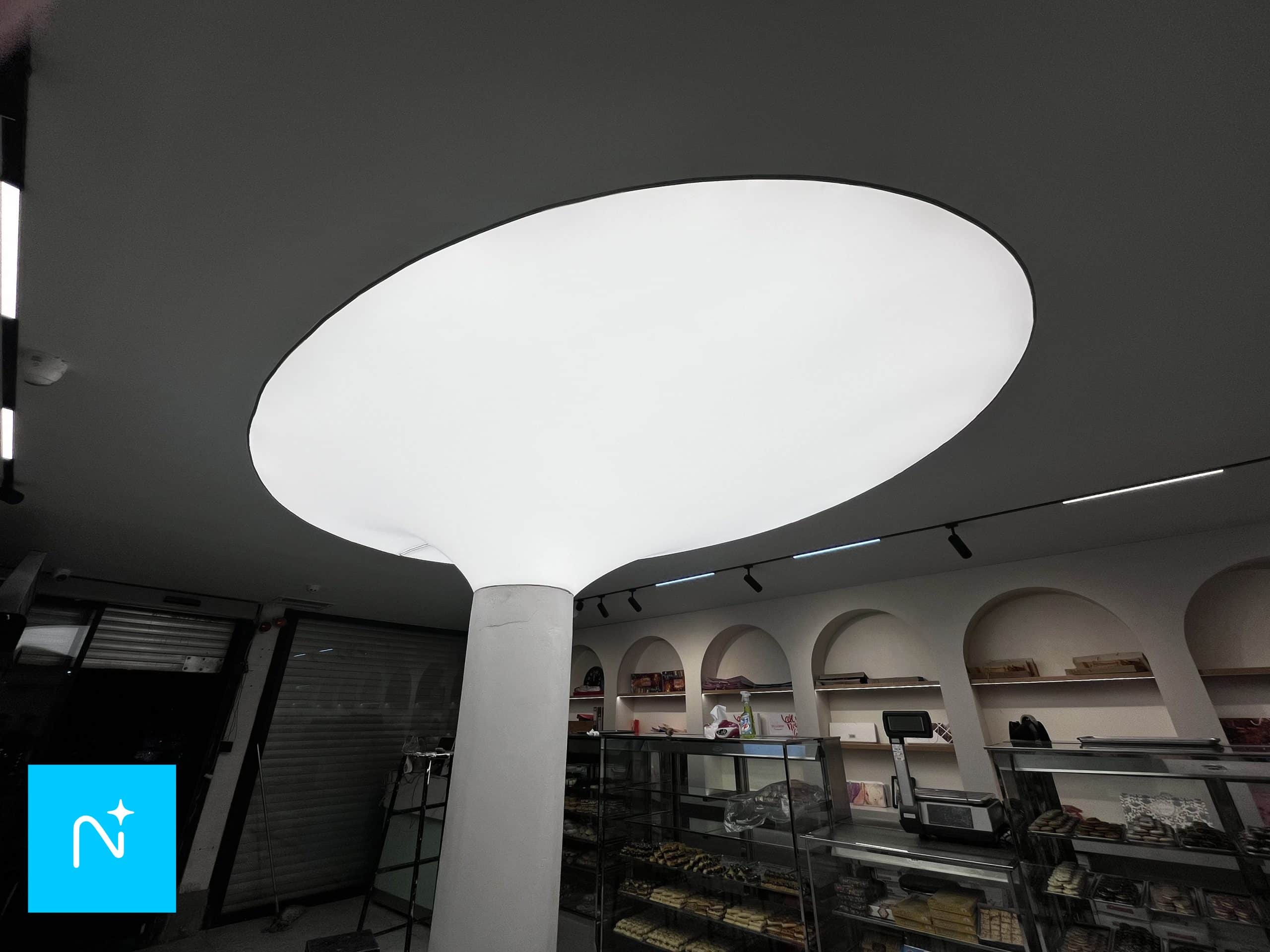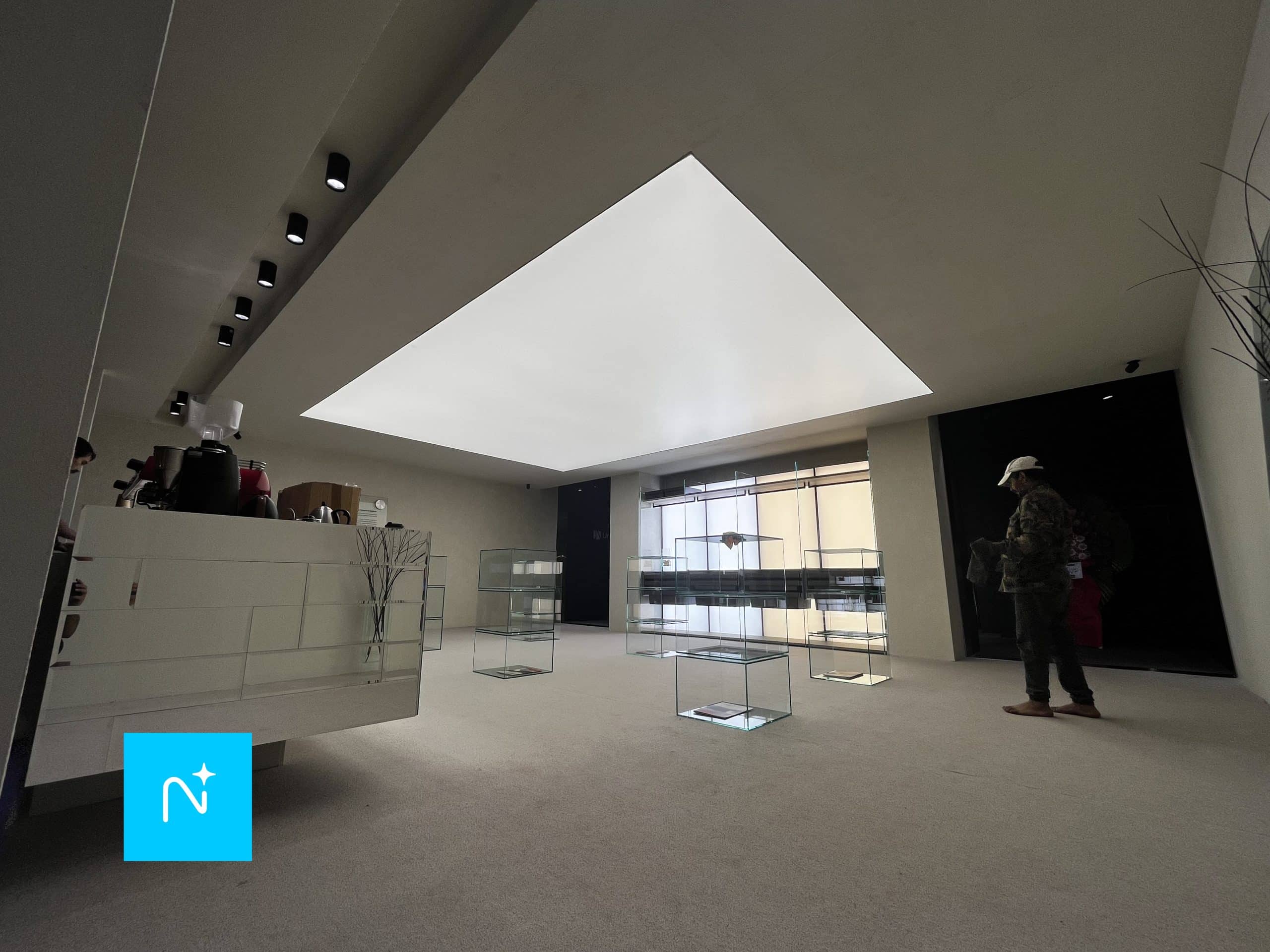 اجرای نورپردازی و سقف کشسان پروژه نمایندگی لوکانو در ایران مال، تهران