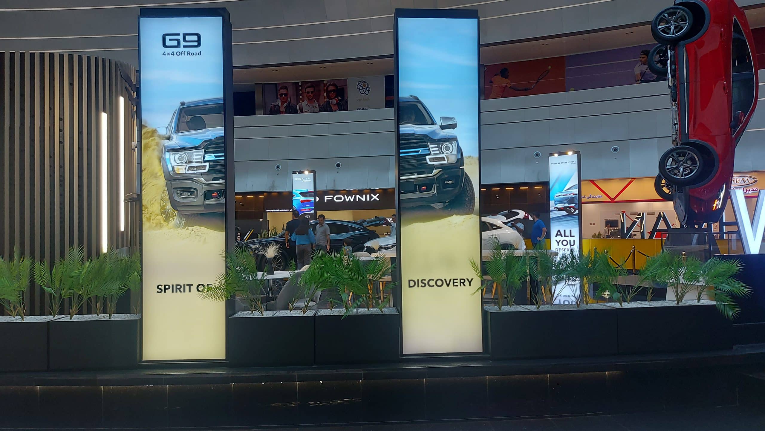 اجرای نورپردازی و لایت باکس های پروژه کار شو و bm space بهمن خودرو در ایران مال تهران