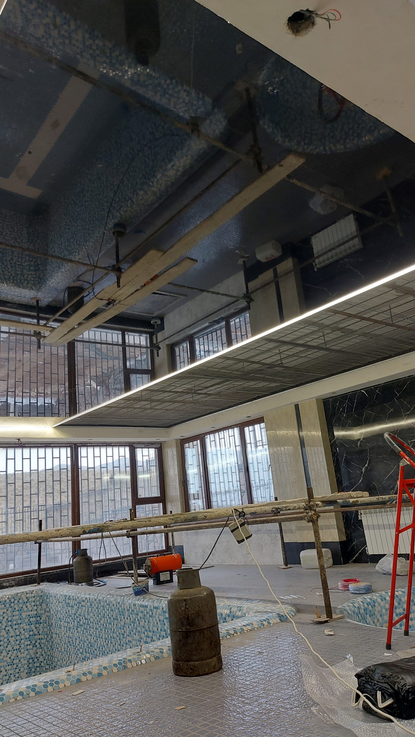 اجرای سقف کشسان لاکر بهمراه لاین نوری در استخر مهرشهر